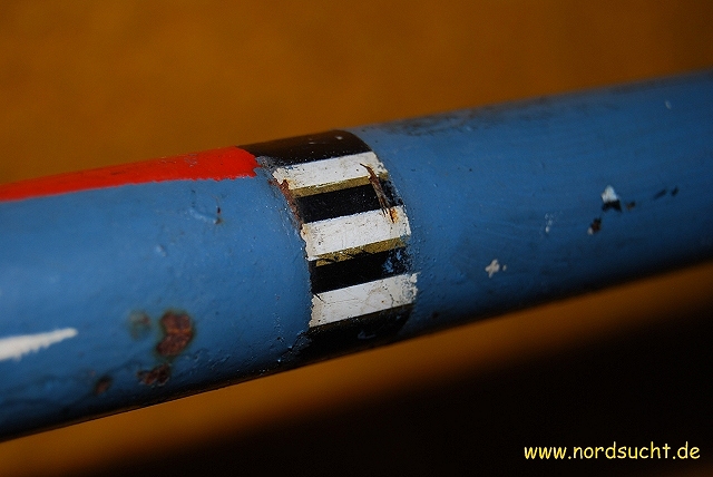 das Radl stand Jahrzehnte im Keller herum, der Reifen war so porös, das ich ihn wie Zwieback zerbröseln konnte. Als es schließlich eines Tages auf der Strasse im Sperrmüll lag, wanderte es in meine Sammlung. Steuersatz und Tretlager sind fest, die Torpedo 55 (Datierung 1958) lässt sich noch leichtgängig drehen. Ansonsten besitzt es eine Weinmann Seitenzugbremse sowie das fertigste Kettenblatt welches ich je gesehen habe. Leider wurde der der wunderschöne schwarz/weis/goldene Originallack lieblos mit Blau überstrichen. Nach der Zerlegung kam ein innen völlig rostfreier, fein mit Fett imprägnierter Rahmen zum Vorschein.