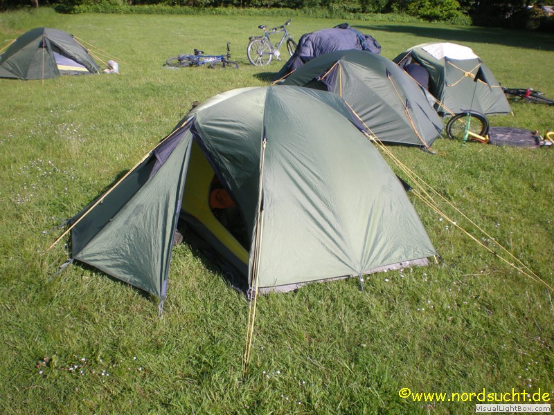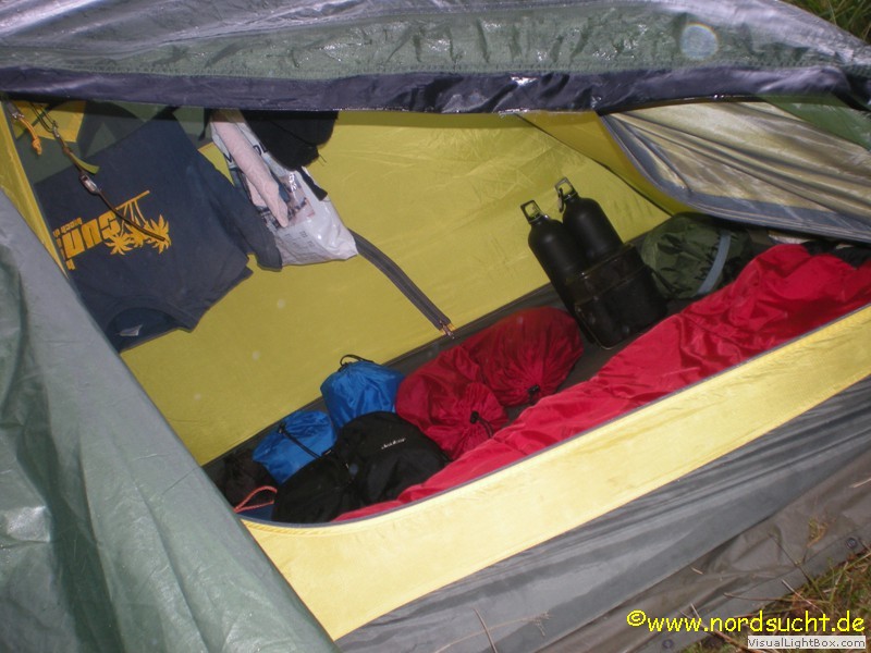 Da wir permanent Regen hatten wurde das Zelt auch teilweise im Regen auf und abgebaut, dies geht bedingt, ist aber nicht so toll wie bei Zelte mit außenliegendem Gestänge.