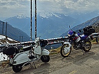 Anfang Mai mit Honda Dominator & Vespa PX80 eigentlich nur zum Pizzaessen über viele kleine Pässe an den Gardasee. Unplanmässig weiter Florenz, San Marino, Rimini & Verona. 3.000 km kalter & nasser Spaß |