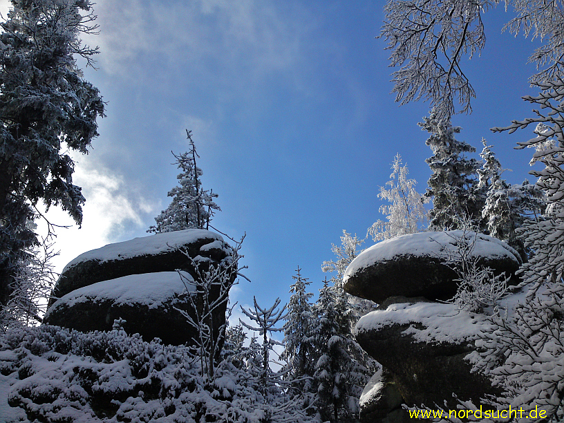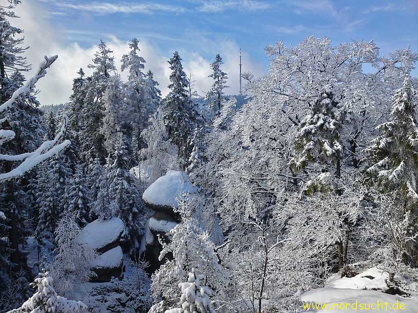 ein paar Tage unterwegs im Fichtelgebirge, Wanderungen auf und um den Ochsenkopf, bei herrlichem Wetter, 4-5cm Neuschnee und nachts -10°C